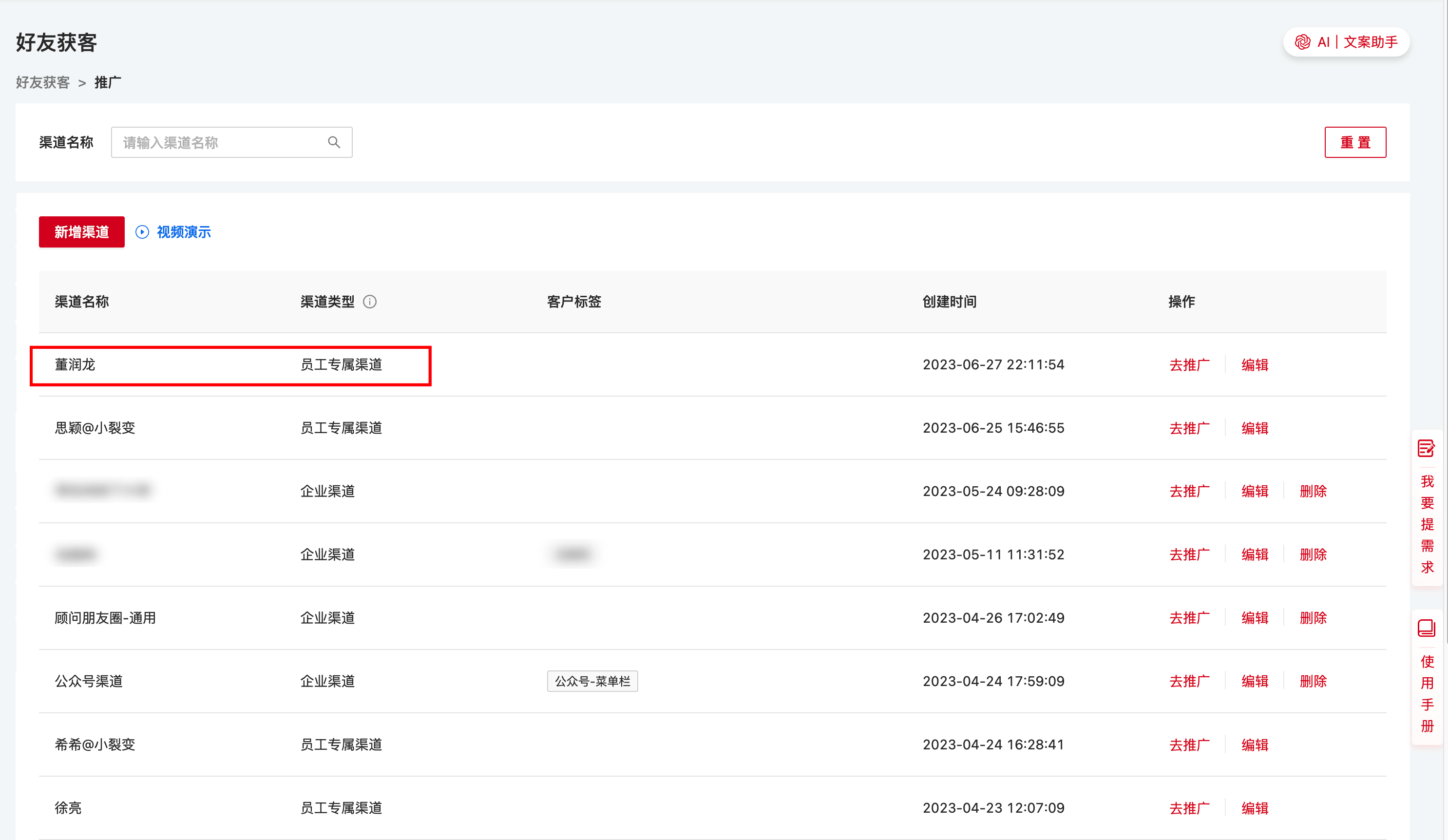 2.  自動(dòng)生成員工專(zhuān)屬渠道
