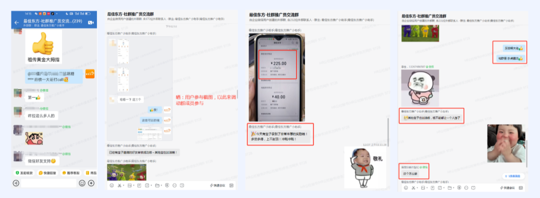 • 營造“做任務賺錢”的群氛圍,刺激圍觀推廣員參與