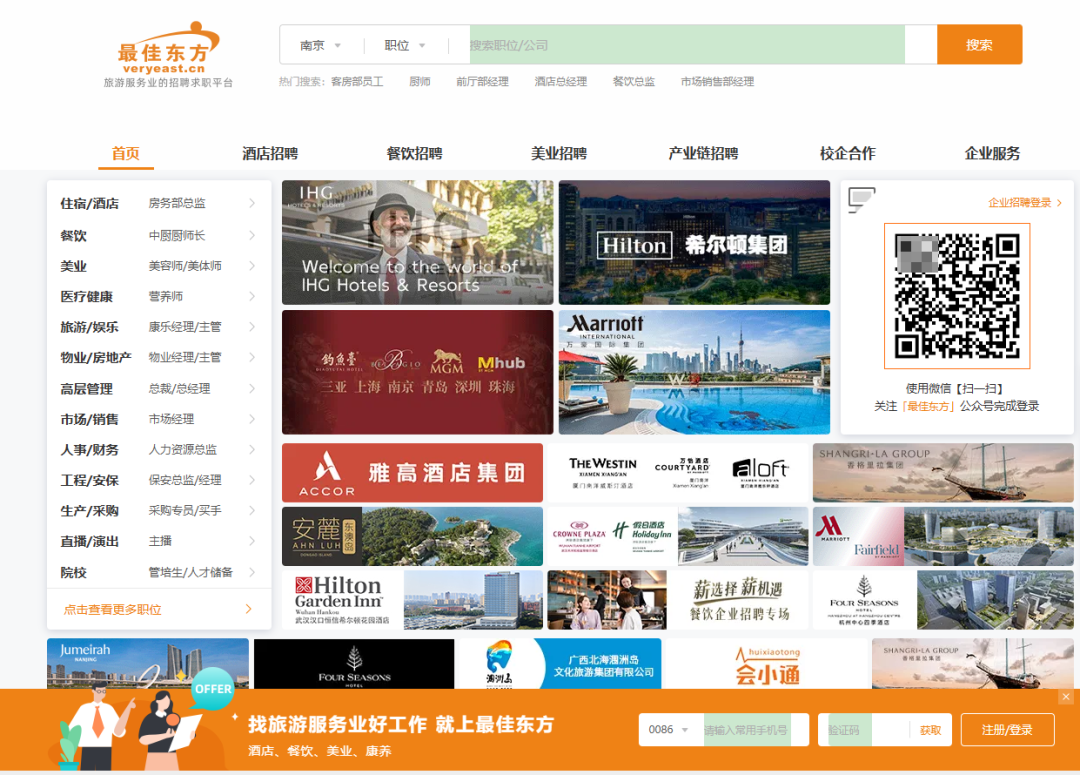 最佳東方是一個專注旅游服務業(yè)(酒店、餐飲、休閑娛樂、康養(yǎng))的招聘求職平臺。為求職者提供酒店、餐飲等行業(yè)招聘信息,幫助旅游服務行業(yè)企業(yè)找到更多優(yōu)秀的人才。
