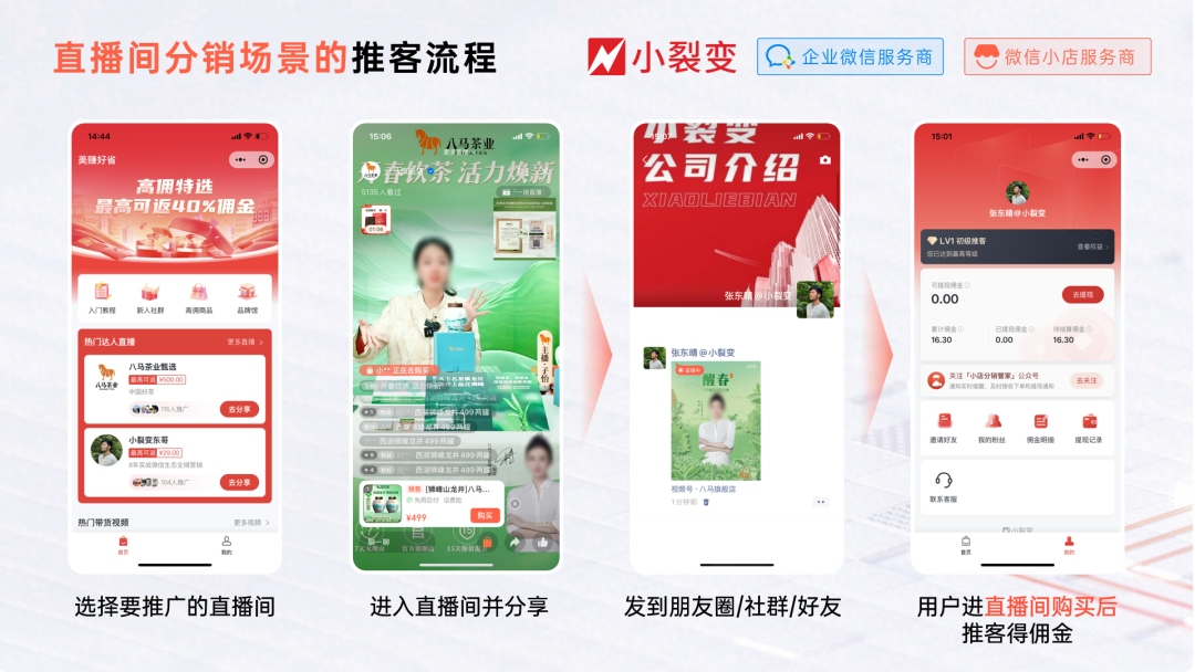 作為微信小店核心服務(wù)商,小裂變第一時間參與到了推客帶貨模式當(dāng)中,把帶貨機(jī)構(gòu)如何開展推客帶貨業(yè)務(wù)已經(jīng)全部摸清了,所有場景的推客帶貨都進(jìn)行了技術(shù)實(shí)現(xiàn),過程當(dāng)中所有的“坑”也都踩了一遍。關(guān)于推客帶貨的一切,小裂變都可以幫到你!