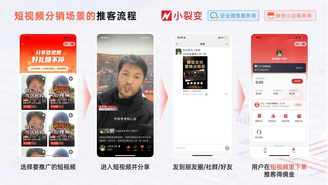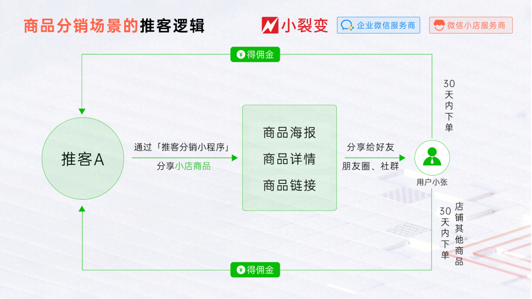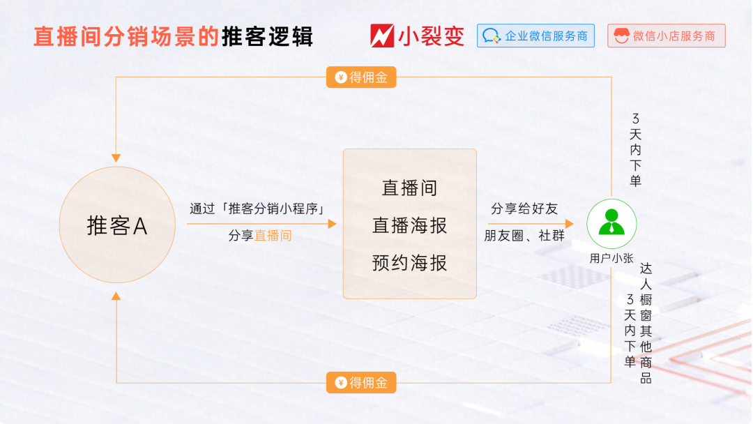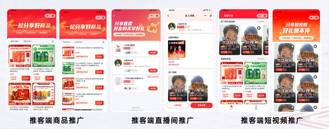 2)分享商品/直播間/視頻號帶貨,推客分銷覆蓋多場景