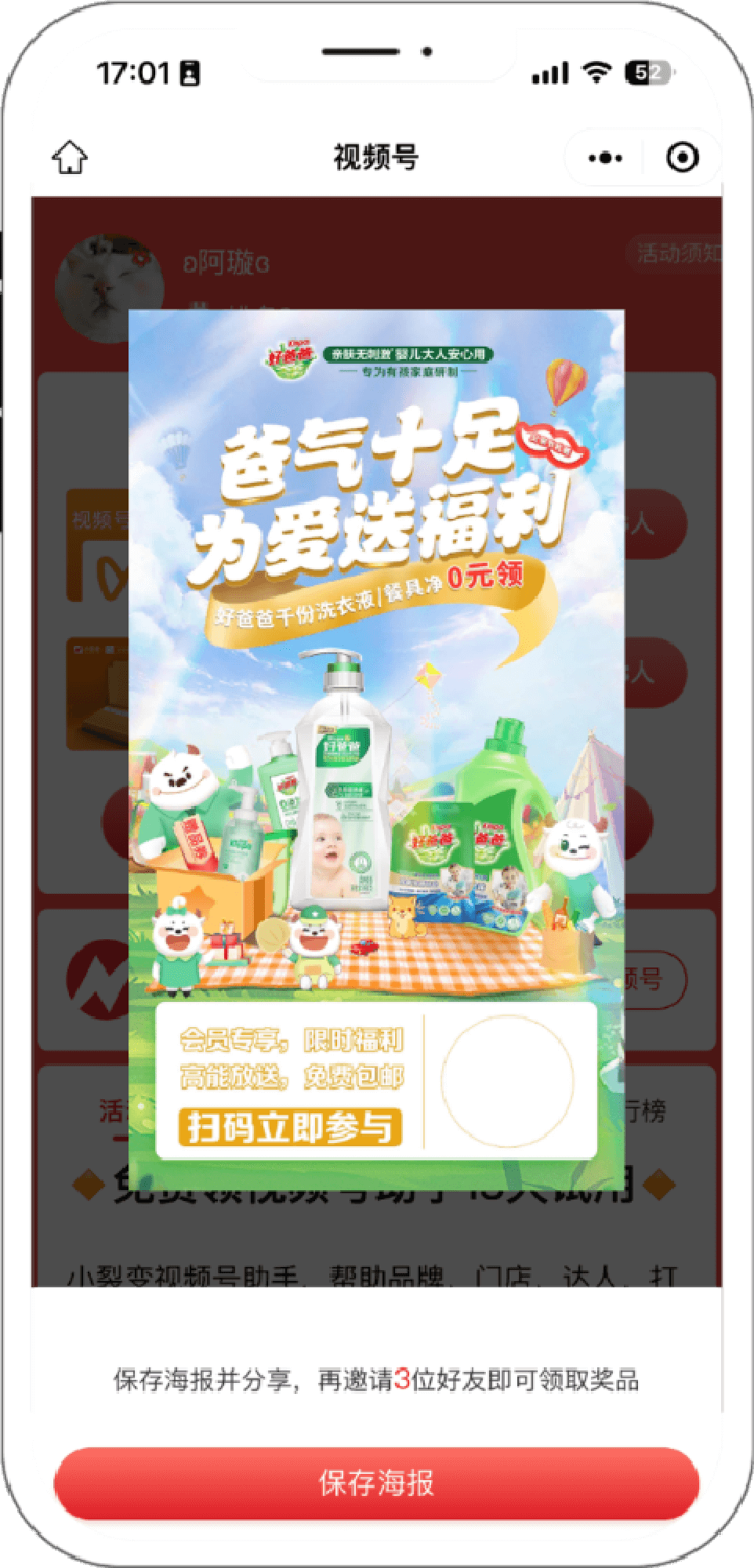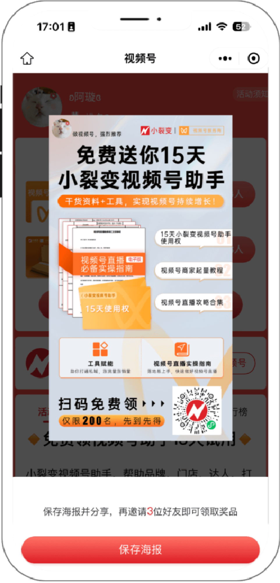 活動海報一鍵上傳,自動設(shè)置用戶頭像、生成專屬海報