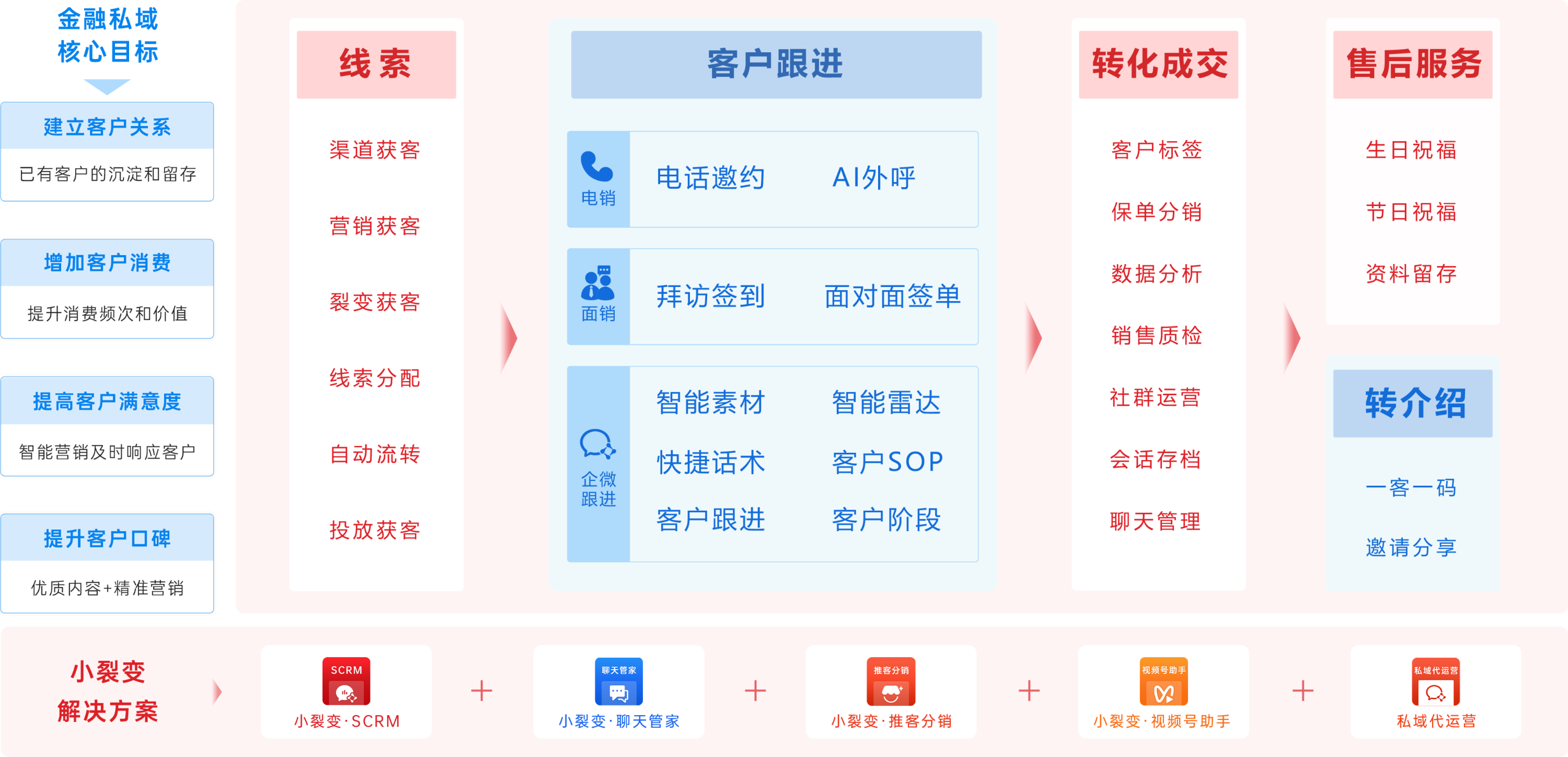 助力金融機(jī)構(gòu)打造全域引流、分層運(yùn)營(yíng)、客戶(hù)轉(zhuǎn)化、社交裂變、客戶(hù)管理閉環(huán)體系