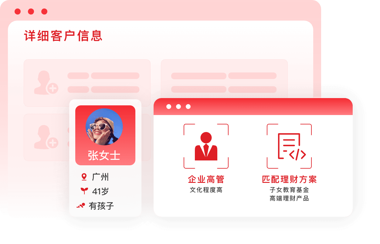 一鍵查詢(xún)客戶(hù)信息、客戶(hù)畫(huà)像、客戶(hù)生命周期信息,客戶(hù)管理更便捷、高效在職繼承、離職繼承功能,保障客戶(hù)資產(chǎn)穩(wěn)定不流失。